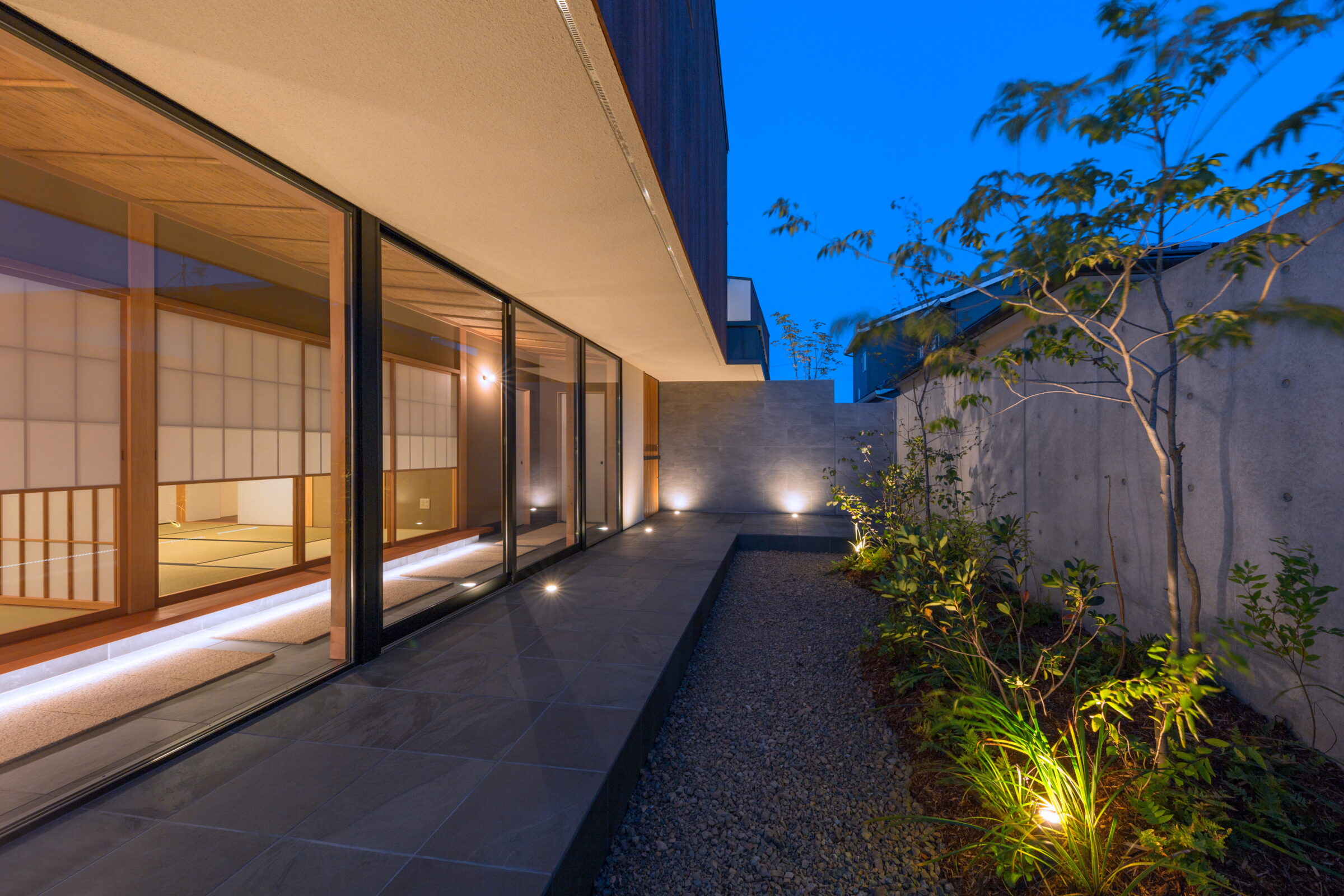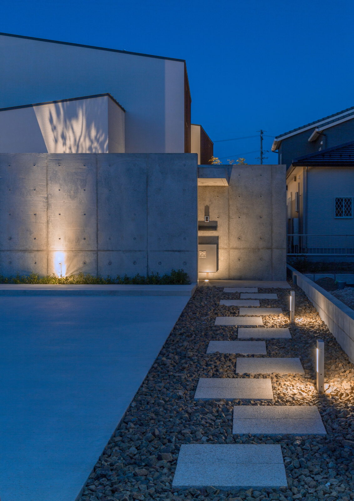 夜には灯りがやさしく家全体を照らし、昼間とは違った静けさと美しさが生まれます。