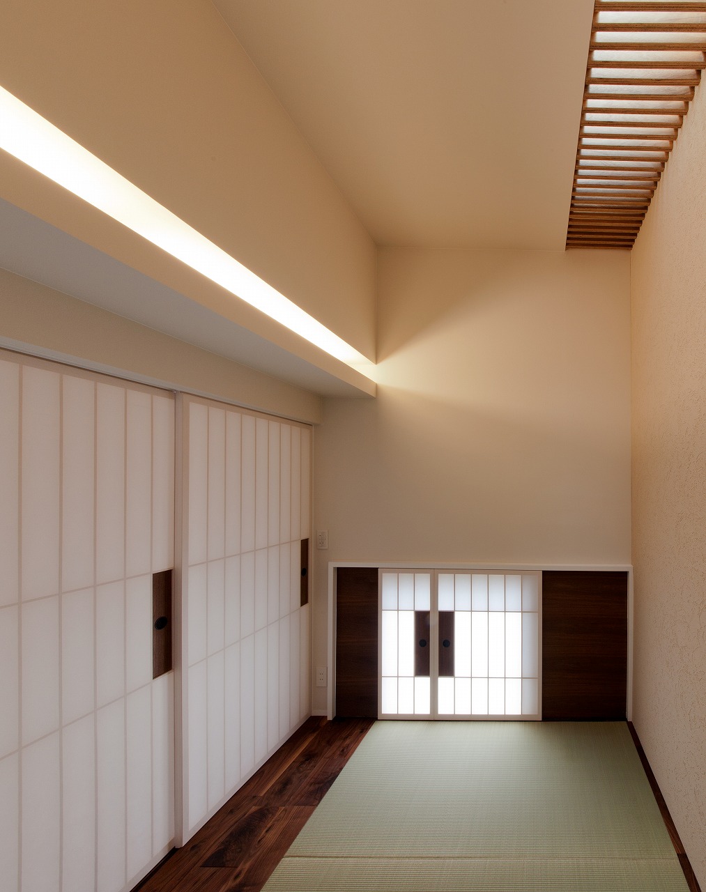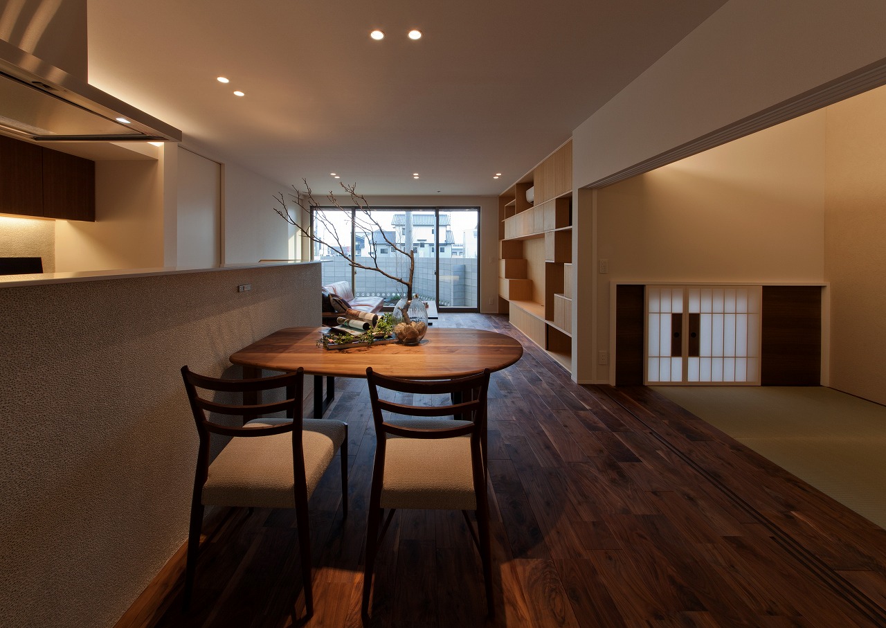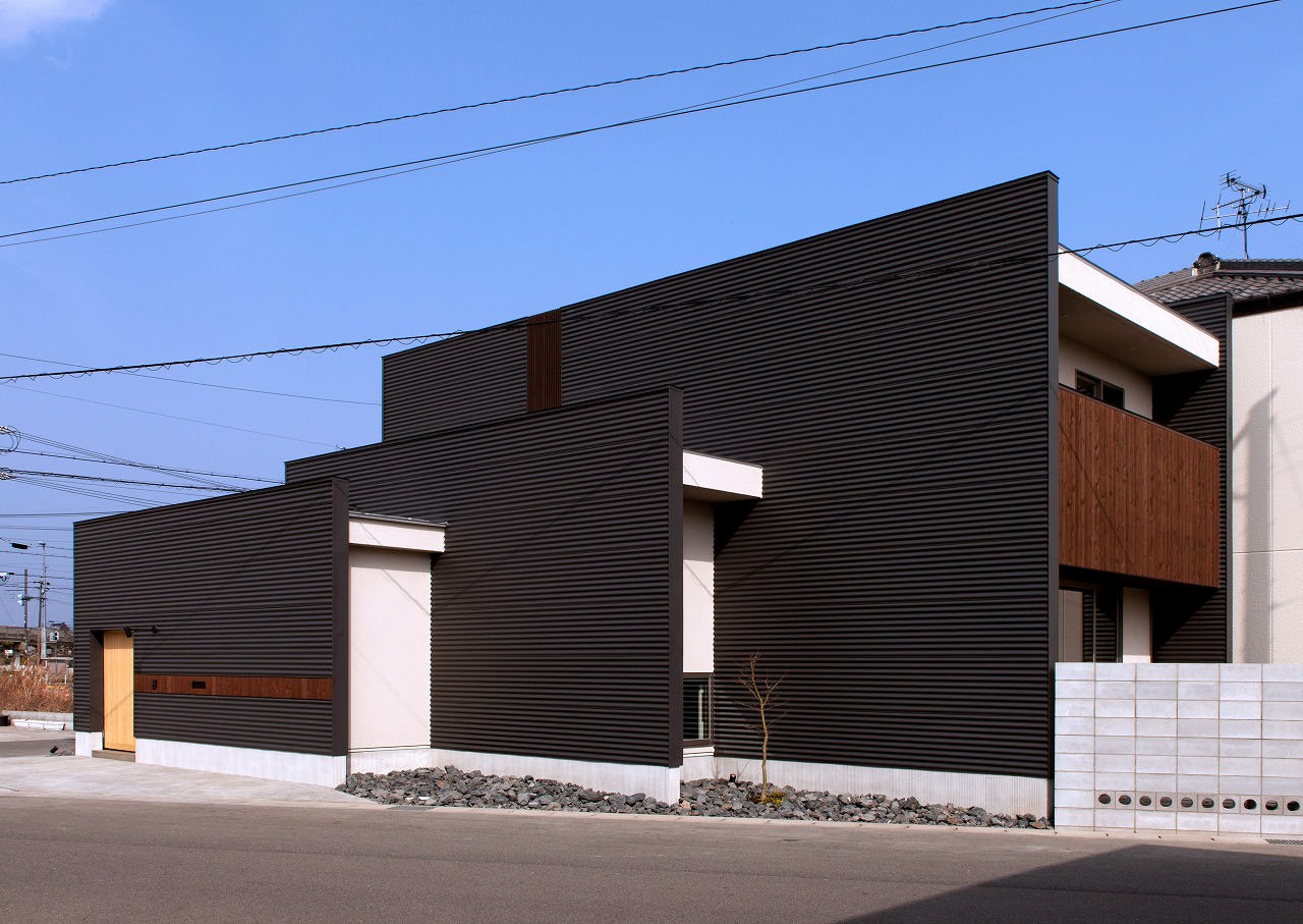 重なり合う黒と木のボリュームが、まるで積み木を組み上げたような独特の外観を形づくる住まい。素材や形の異なる箱をリズミカルに配置することで、街並みに新たな景色を描き出します。一見閉じた表情の中に、玄関アプローチや中庭など、光や緑を取り込む工夫が丁寧に散りばめられています。内部空間は無垢の木を基調に、柔らかな光と陰影が心地よく交差し、静かで豊かな時間が流れる設計に。家族の暮らしをやさしく包み込みながら、外と内をつなぐ“積み木”のような構成が、日々の風景に変化と奥行きをもたらします。形に遊び心を、空間に品格を宿す、都市の中の静かな居場所です。