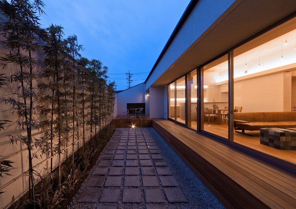 外からの視線をやさしく遮りながら、内側には光と温もりを取り込む落ち着いた住まい