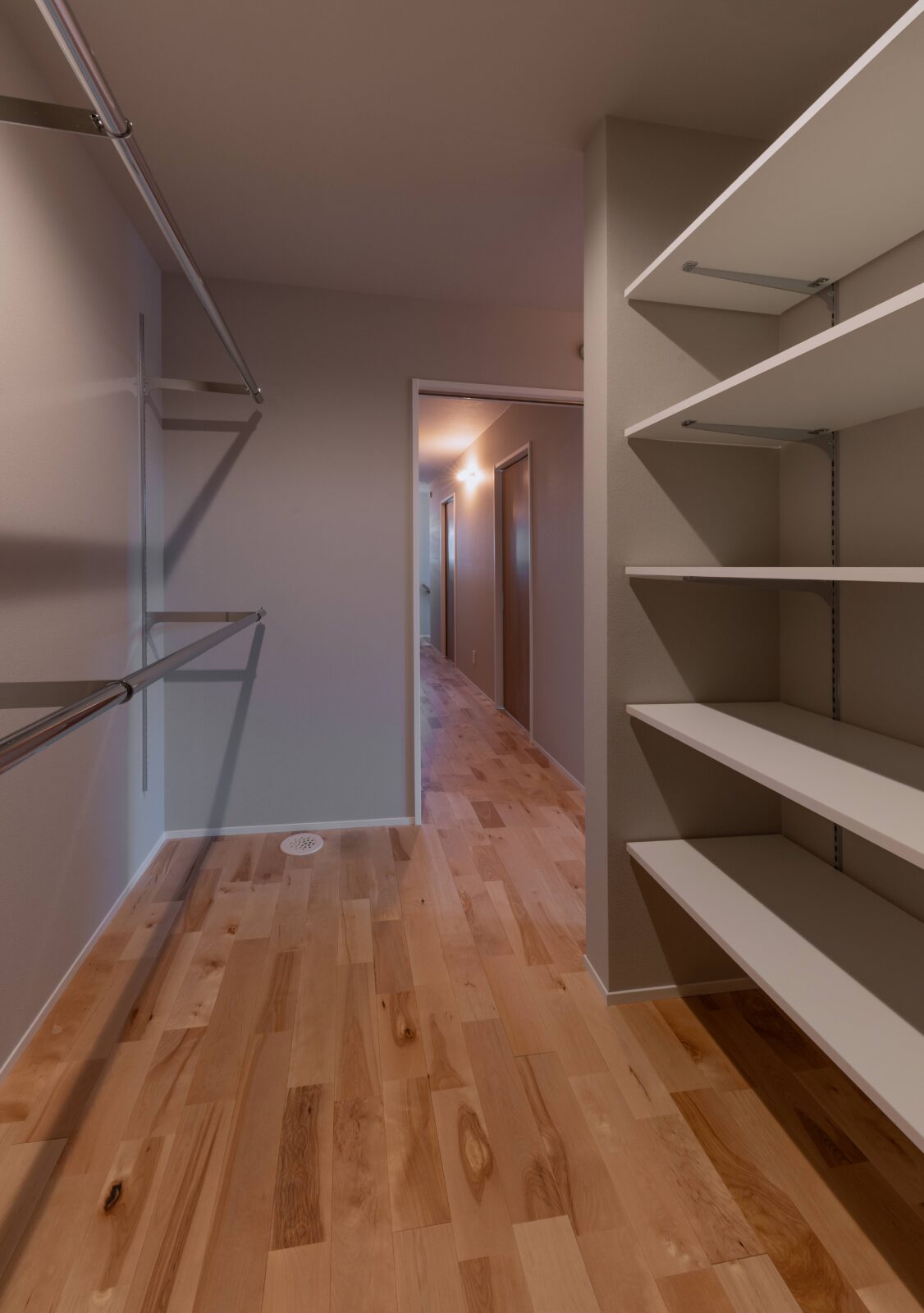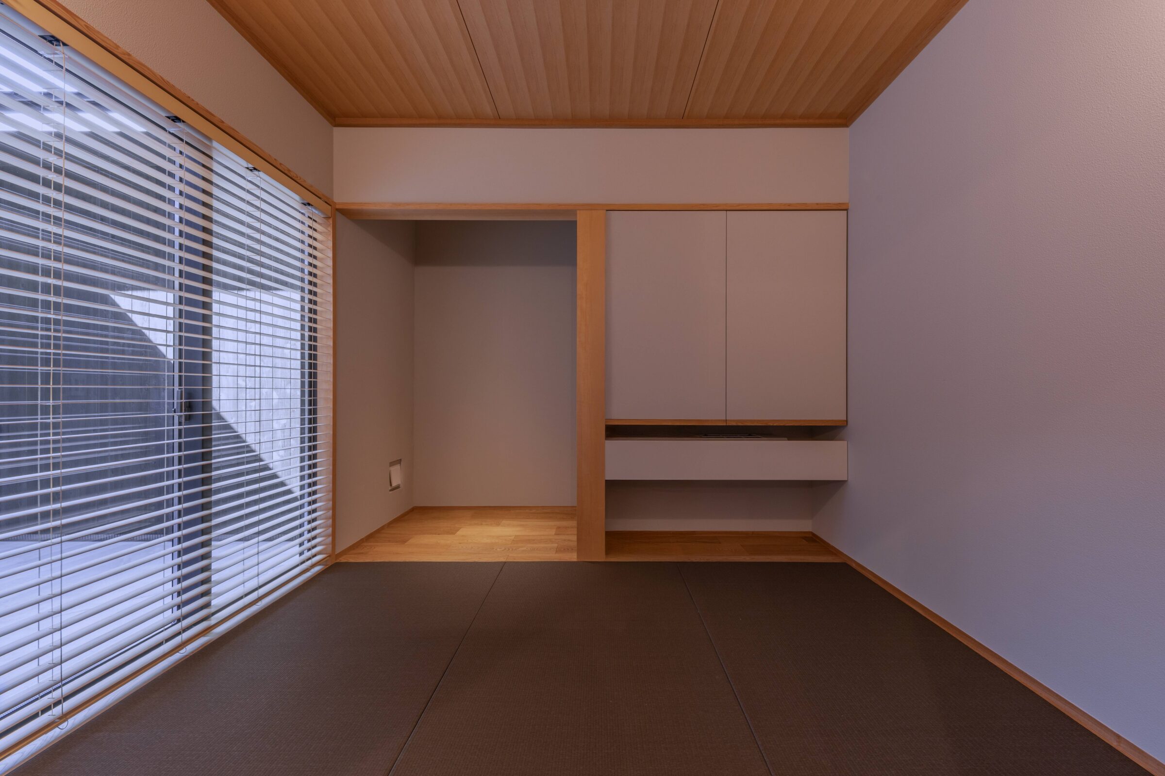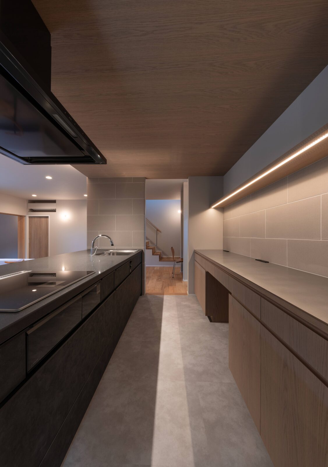温かみのある木と、一見冷たさを感じさせるグレー調の仕上りがバランスよく配置されています。